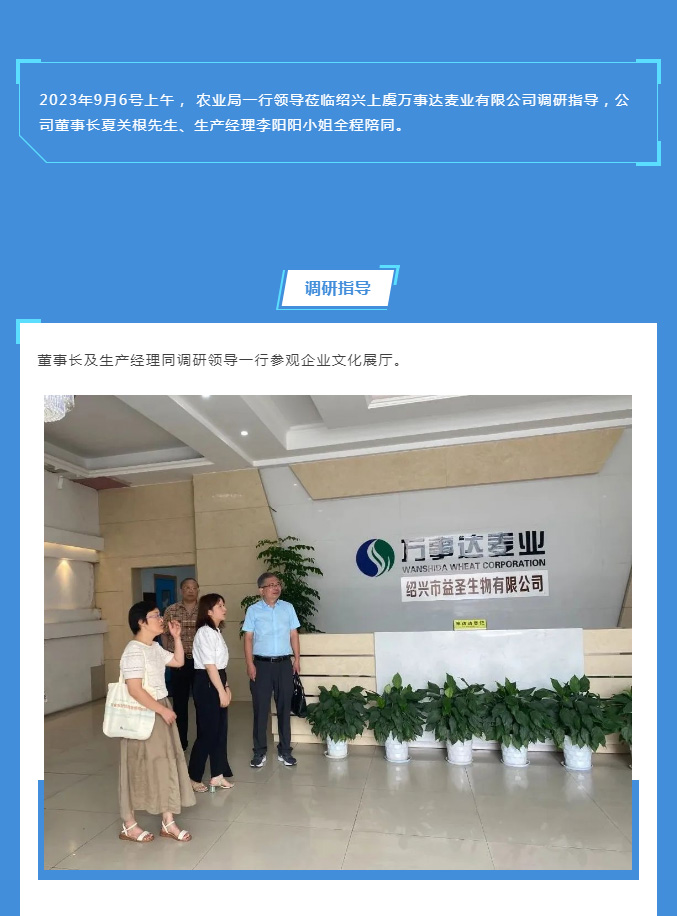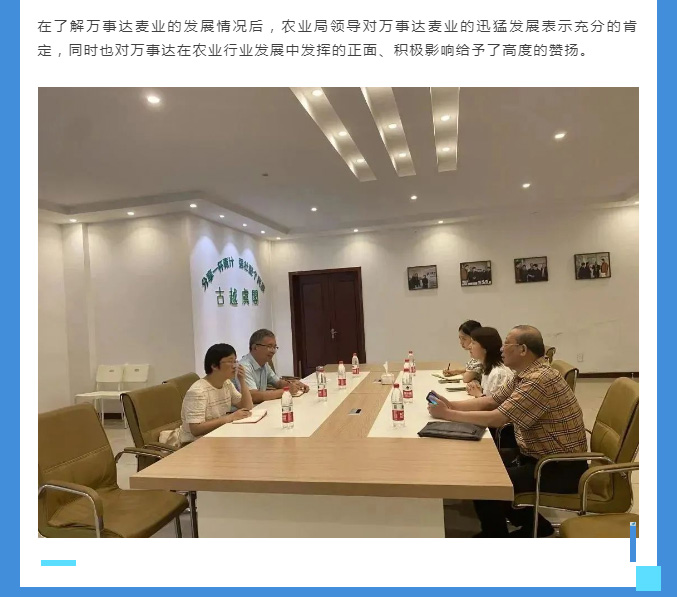 【萬事達(dá) · 時訊】 ┃ 農(nóng)業(yè)局領(lǐng)導(dǎo)蒞臨萬事達(dá)麥業(yè)調(diào)研指導(dǎo)工作